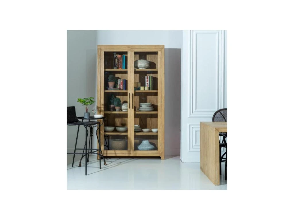 Ligne indémodable et beauté du bois d’Orme pour cette vitrine 4 étagères de belle qualité.
