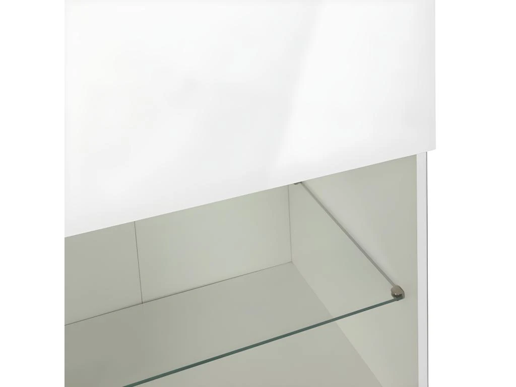 - DÉTAILS : 1 porte réversible. 2 étagères fixes. 1 étagère en verre. Éclairage LED et visseries pour fixation murale NON INCLUS.